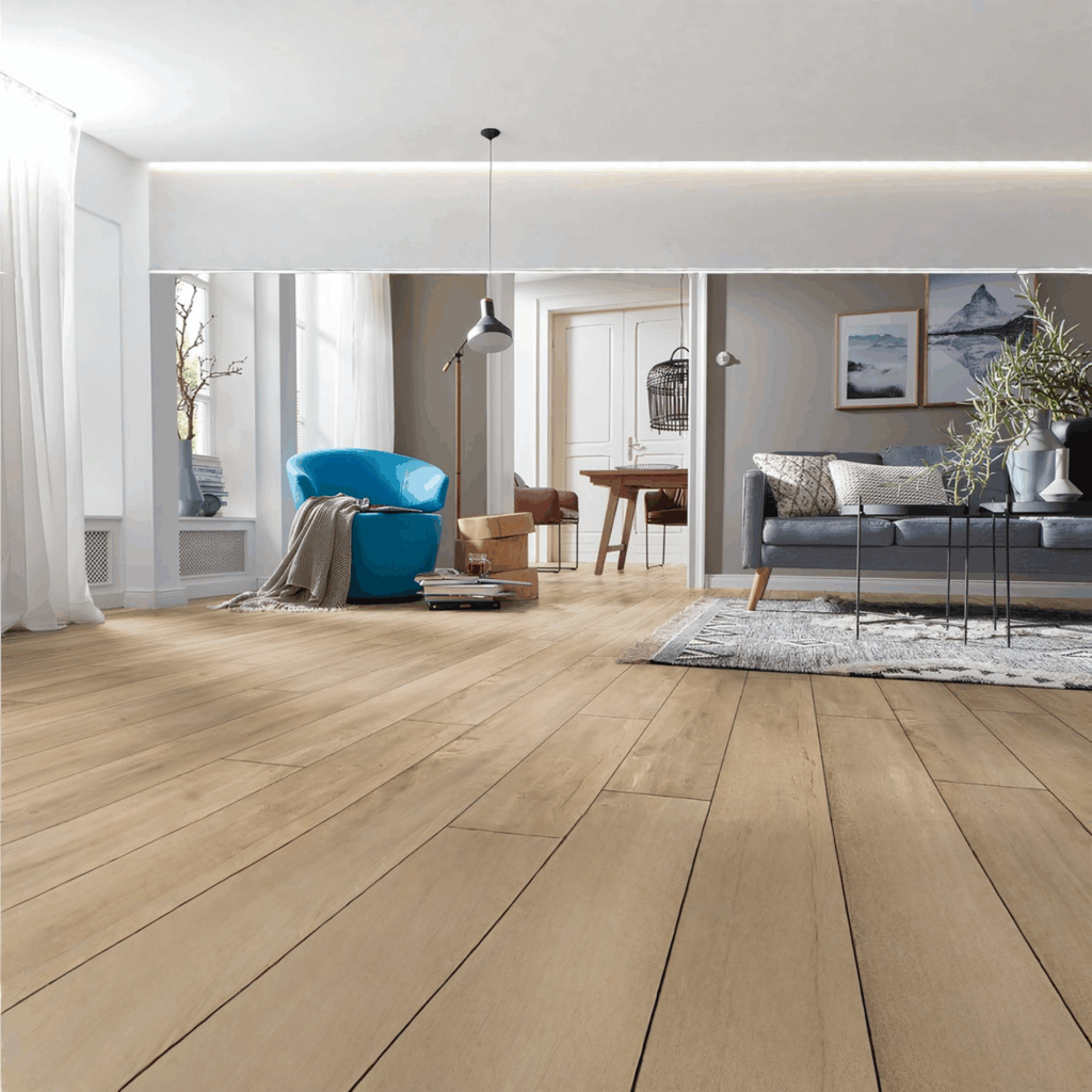 Revêtement de sol à base de panneau HDF avec décor imprimé et couche d’usure. Résistant et économique pour tous types de poses.Nos marques
